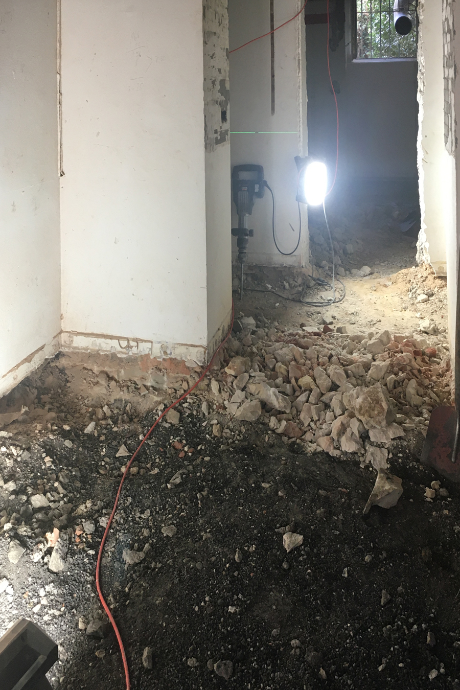 Ein ehemaliges Tattoostudio im Souterrain eines denkmalgeschützten Hauses soll in eine hochwertige gewerbliche Fläche umgebaut werden. Vorher gilt es: sämtliche Elektro-, Telefon- und sonstige Leitungen der Hausgemeinschaft aus diesem Sondereigentum zu verlegen, neuen Boden einzubauen und dabei gleich die Fundamente mit zu sanieren,…