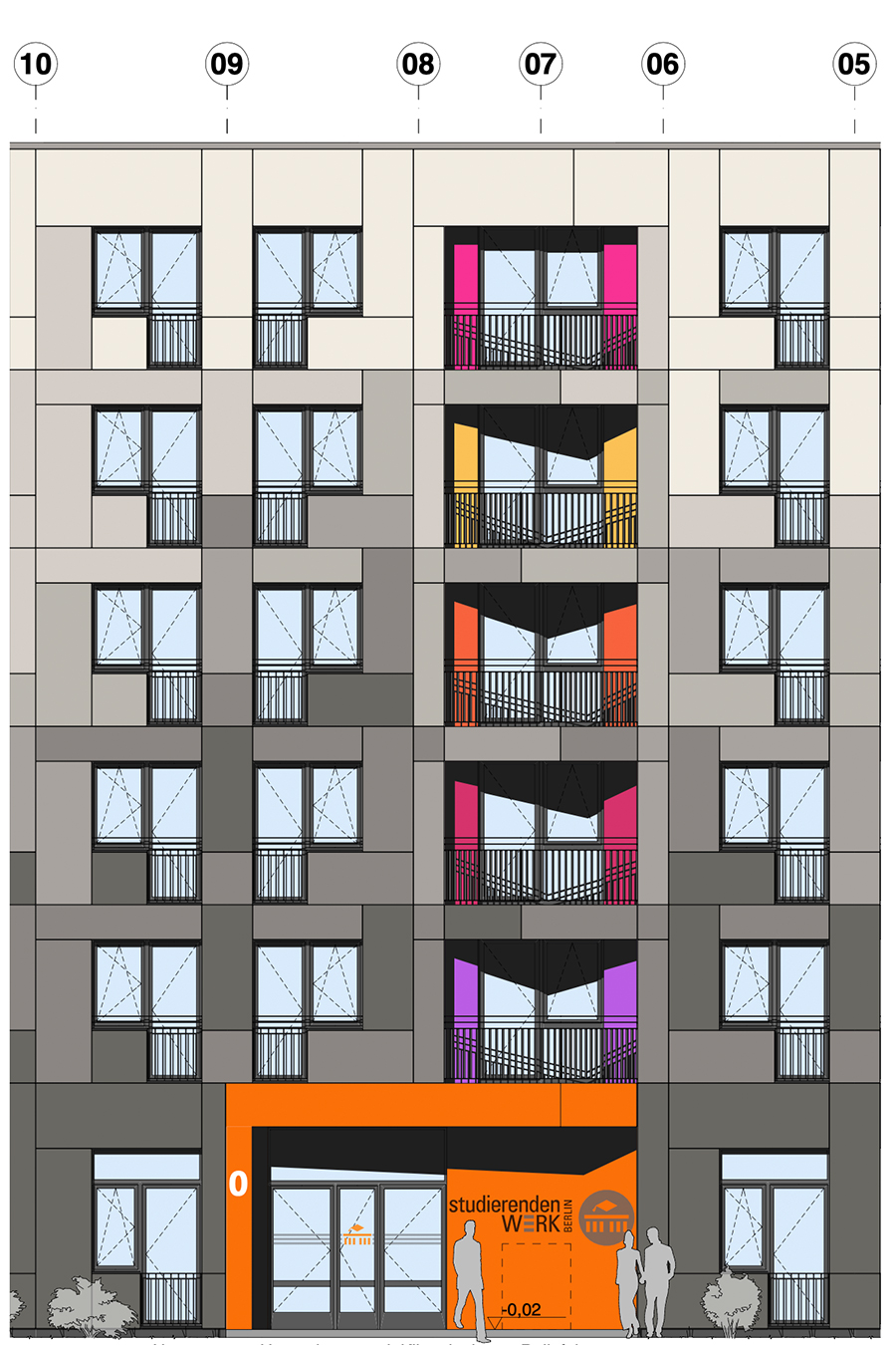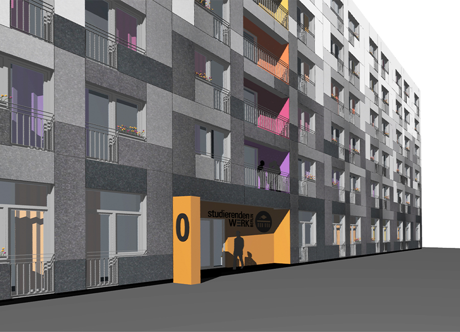 Auf dem großen Grundstück eines bestehenden Wohnheims in Karlshorst, erbaut in Plattenbauweise und bestehend aus drei 6-geschossigen Gebäuderiegeln ist eine weitere Nachverdichtung möglich. Umfangreiche Abstimmungen mit Bauaufsicht und Stadtplanung ermöglichen nun einen Neubau mit 176 neuen Miniapartments.