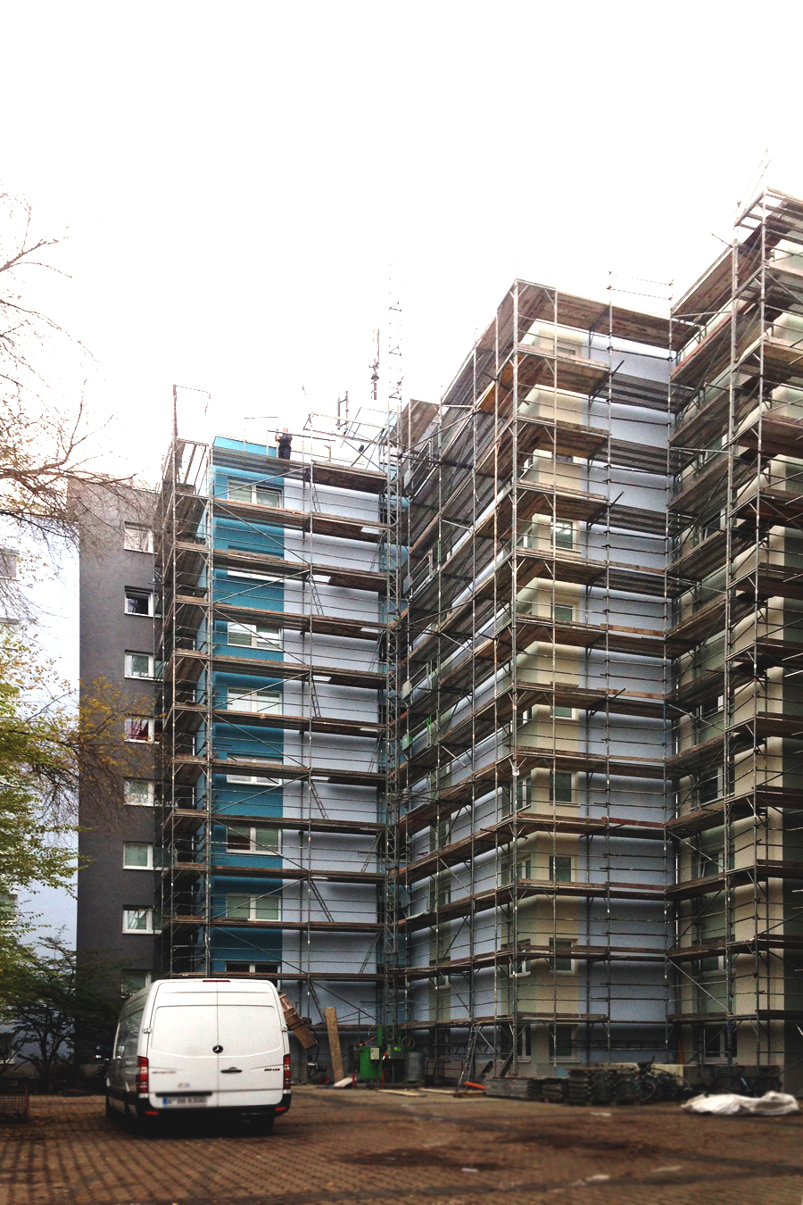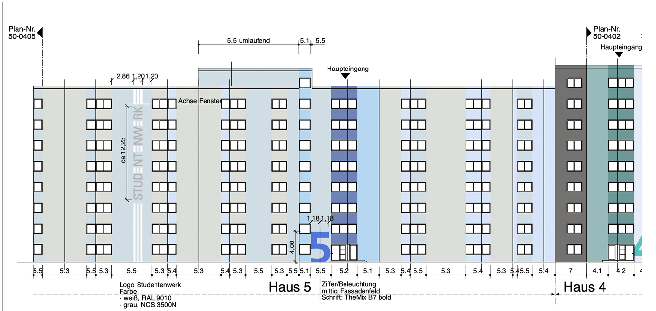 Das Wohnheim in unmittelbarer Nähe des Schlosses Charlottenburg besteht aus drei aneinandergrenzenden Turmhochhäusern. Die fällige Sanierung wird gestalterisch begleitet und schafft so nicht nur sanierte Oberflächen sondern eine neue moderne Geschichte, Identifizierung und Aufwertung.
