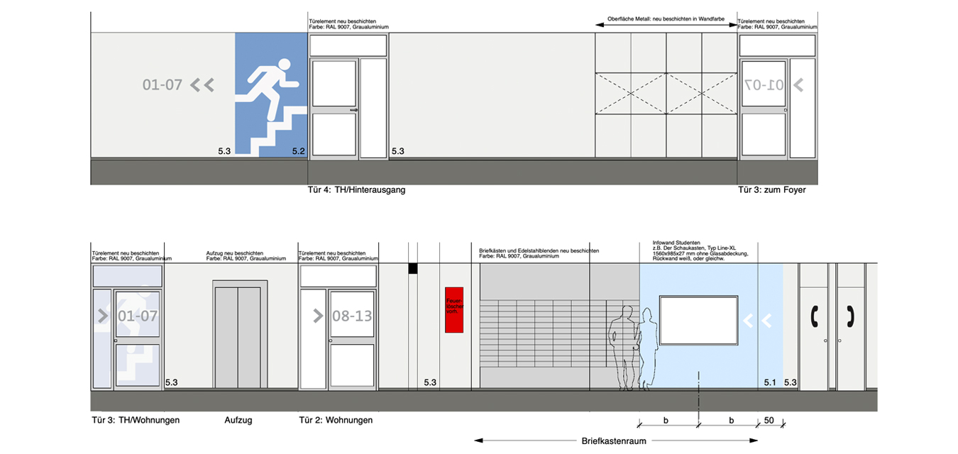 | Umfang | Fassadengestaltung, Wegeleitsystem, Umbau |