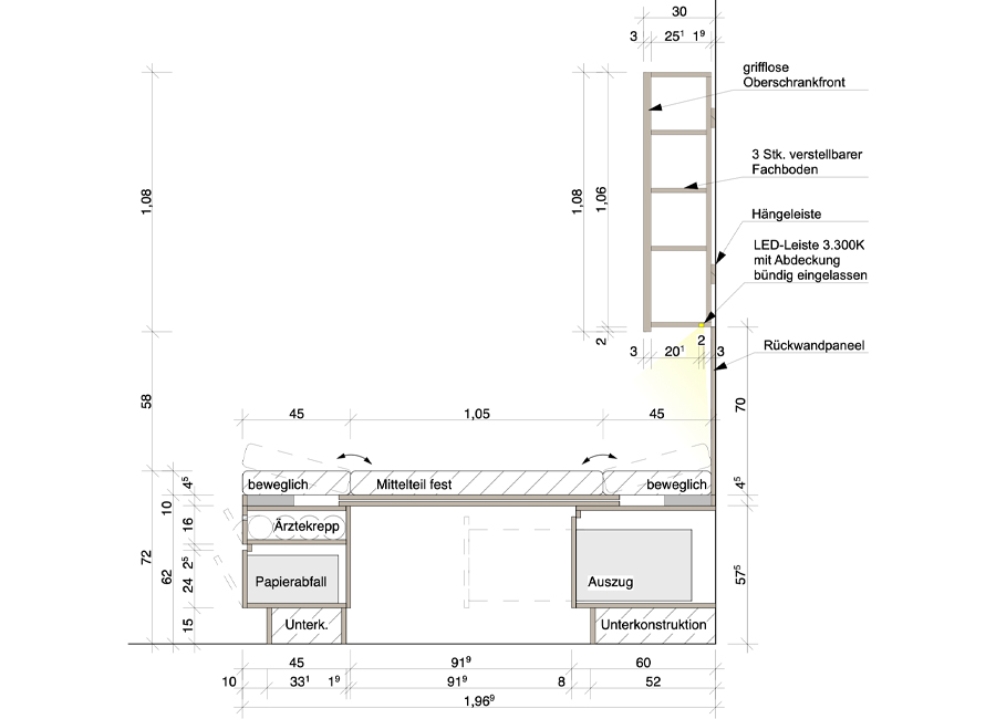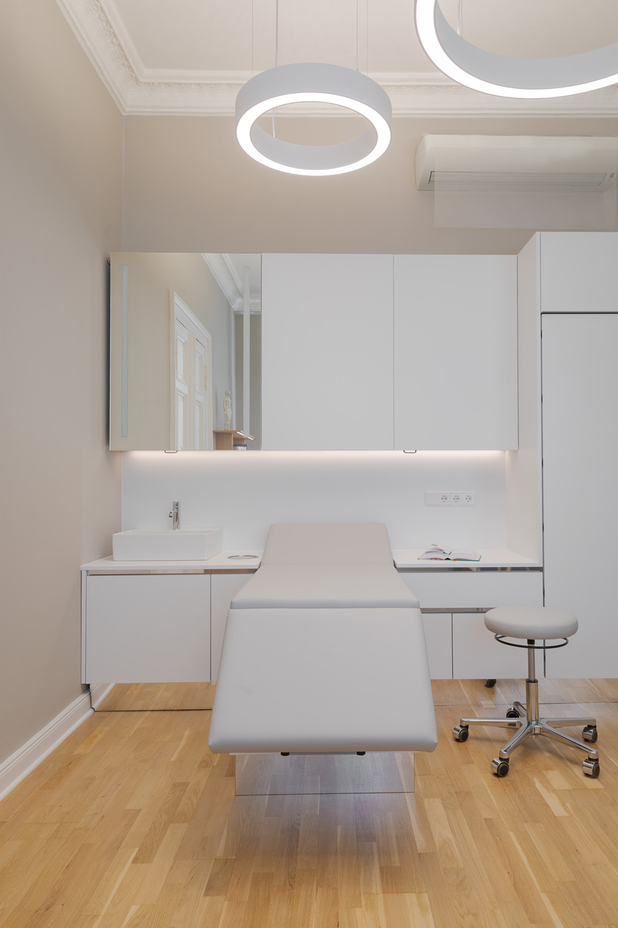 Eine neue Ärztin in einer Gemeinschaftspraxis bringt frischen Wind in den Alltag. Das muss man auch in Ihrem Behandlungsraum sehen. Eine einladende frische Atmosphäre, gute Organisiation des Behandlungsablaufs, funktionales aber auch stimmungsvolles Licht, aufgefrischte schöne Altbausubstanz und Vorhänge für entspannte Akustik...