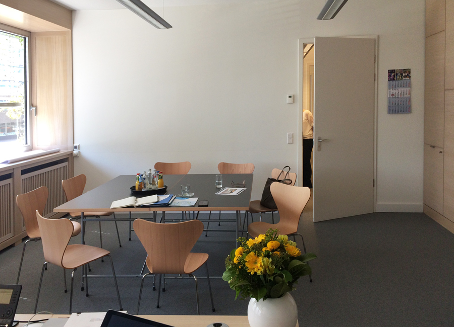 Das Büro eines Vorstandes sollte nicht nur funktional und repräsentativ sein, sondern auch die Persönlichkeit der Führungskraft widerspiegeln. Hell, freundlich und offen, einladend für ein Meeting in kleiner Runde oder für das vertrauliche Gespräch. Elegante Farben und Oberflächen, hochwertige Einrichtung, maßgeschneiderte Qualität…